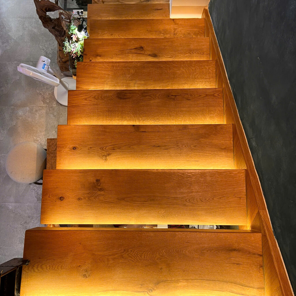 Mặt bậc: gỗ sồi kỹ thuật dày 30–40mm.