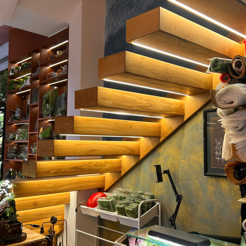 “Mỗi bước chân trên cầu thang bay không chỉ là chuyển động, mà còn là trải nghiệm về sự tinh giản và sang trọng trong không gian sống.”