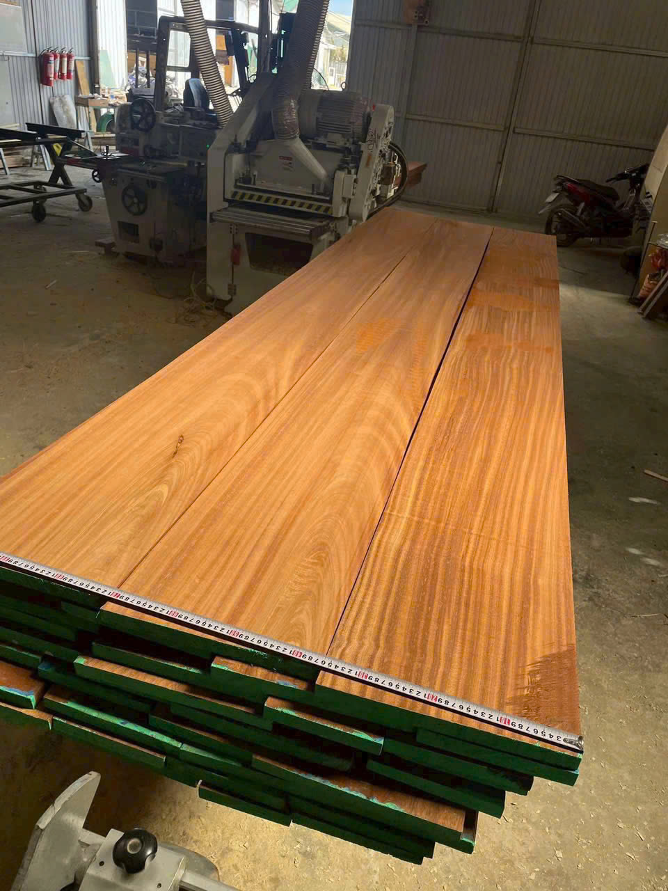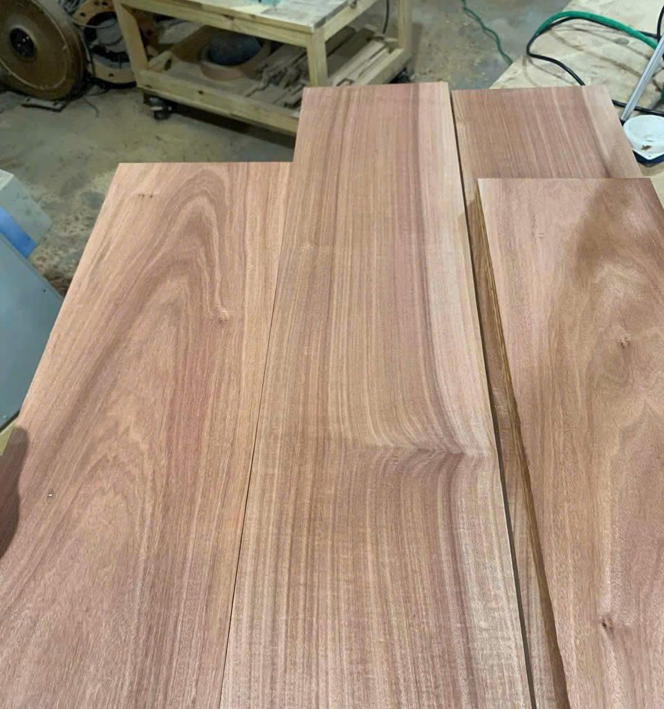 Gỗ có màu đỏ nâu ấm áp, thớ gỗ thẳng, vân rõ nét, mềm mại và sâu, tạo hiệu ứng sang trọng tự nhiên.